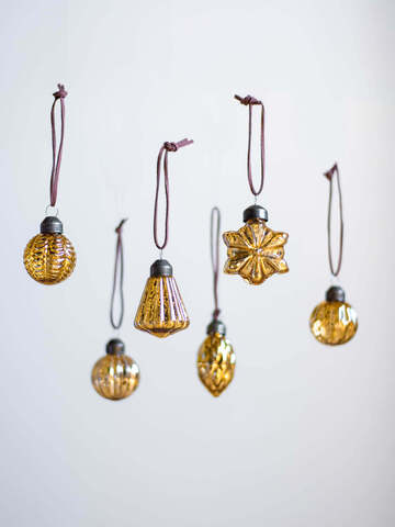 あたたかなゴールドが目を惹く、6種類のモチーフがセットになったミニサイズのガラスオーナメント。