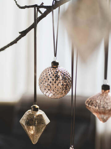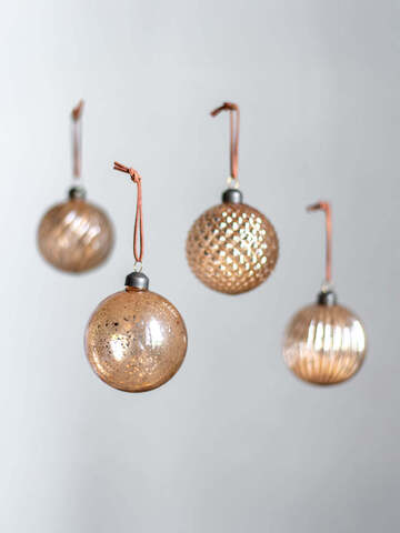 柔らかな輝きが美しいシャンパンカラーのボール型ガラスオーナメント。