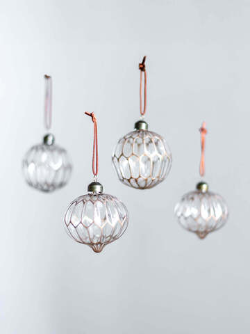 No.5 Line ball copper - 折り紙のような陰影が美しいガラスオーナメント