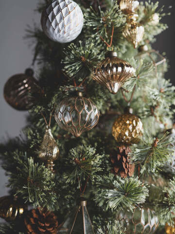華やかすぎず、それでいて存在感のあるデザインは、クリスマスツリーを上品にまとめたい方におすすめ。ライトの光を受けると陰影が際立ち、ツリー全体が一層引き立ちます。