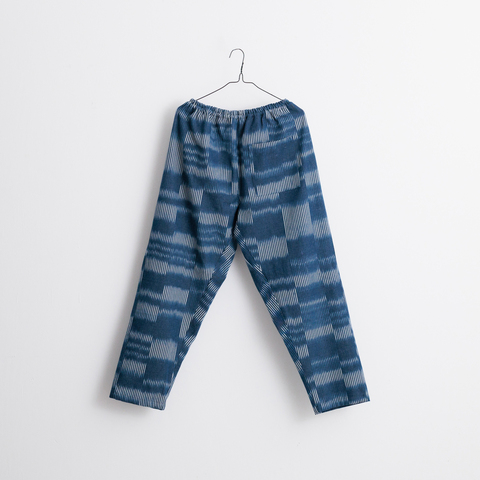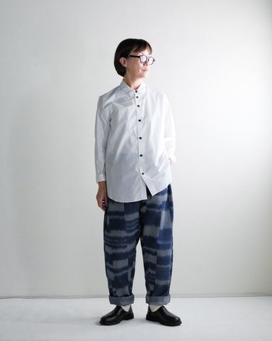 ゆらぎのある繊細な久留米絣の風合いと、カジュアルなデニムがやさしくなじんでいます。