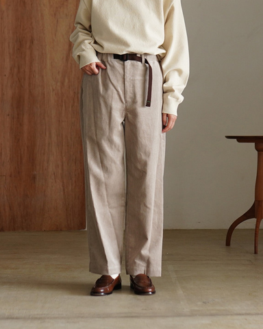 ゆったりとしたワイドシルエットながら、やや短めの丈感ですっきりとした印象に。ウエストはゴム仕様に加えて内蔵ベルトで調整でき、快適な穿き心地を実現。