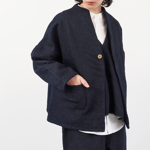 すっきりとしたノーカラーと一つボタンのデザインで、カジュアルにもきれいめにも対応。お仕事やお出かけシーンにもなじみます。