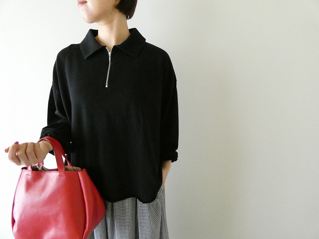 大きめの襟とジッパーがポイントの裏毛プルオーバー