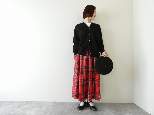 華やかなチェックのスカートに合わせても大人っぽい印象に仕上げてくれます。