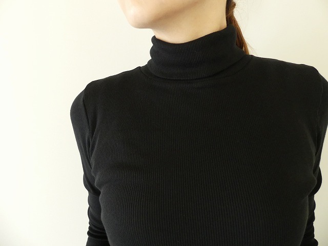 身幅はタイトな作りですが、長めの着丈になっているので、重ね着に使いやすい仕上がりになっています。筒状に編み上げているので両サイドに縫い目がなく、ストレスフリーでご着用していただけます