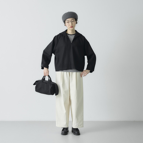 上品で柔らかな肌触りと軽さがポイントの、リサイクルウールフランネル生地を使用したセーラーカラーのプルオーバーです。