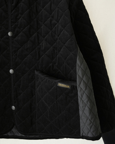 上品なベルベットの艶と異素材パネルのコントラストが美しい、ラベンハムの「PANELED BOMBER JACKET / パネルド ボンバー ジャケット」。