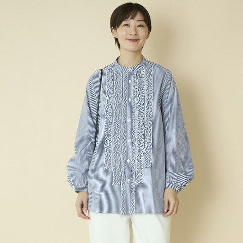 ここ数年は四季が感じにくく、10月でも汗ばむ日が増えました。厚手のニットなどが活躍する時期がぐっと短くなり、その分、長袖ブラウスを着る季節が長くなっています。こちらのブラウスはコットン素材なので、1年中快適。