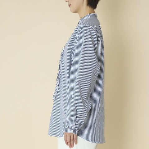 オフホワイトとブラックのフリルは、ブラウス本体とは違う生地を使っています。ストライプのフリルはブラウス本体と同じ生地です。