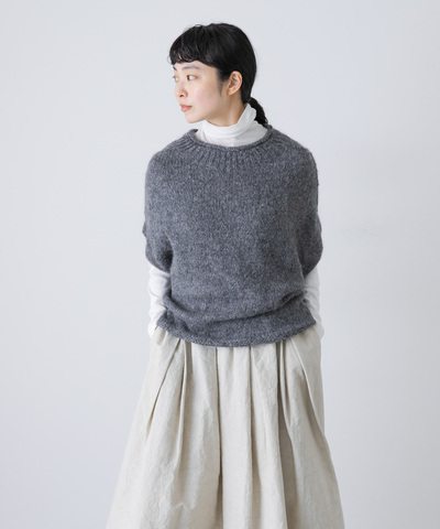太めのリブとほんのりカールした襟のディテールもアクセントに。