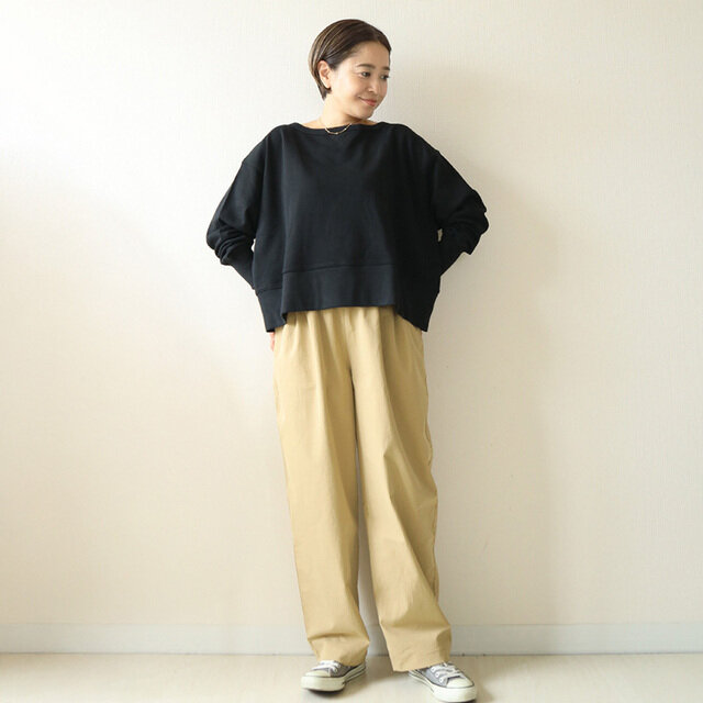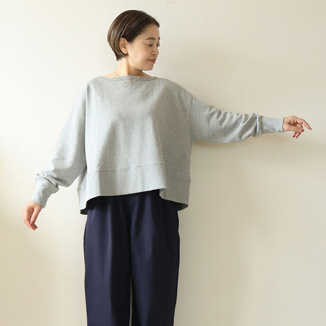 Sans Souci 34+|一枚で決まる 大人のスウェットボートネックプルオーバー 長袖シャツ