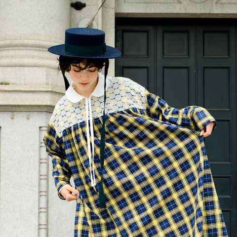 クラシカルなロイヤルタータンチェックのワンピースに繊細なサークルレースを使用したロイヤルタータン ヨークレースワンピースです。甘すぎず上品にまとまる、大人のための異素材ドッキングワンピースです。
