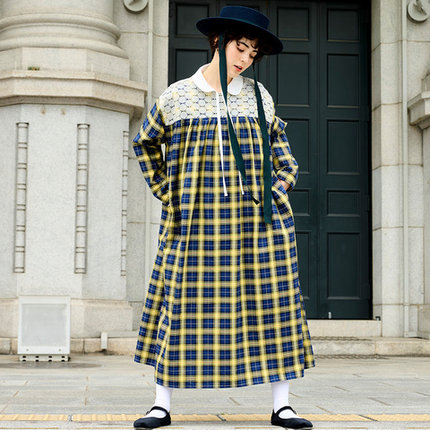 繊細なレースヨークとロイヤルタータンチェックを切り替えた、存在感のあるデザインです。