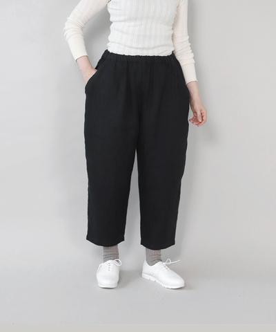 mumokuteki|長さが選べる2サイズ展開のリネンコクーンパンツ