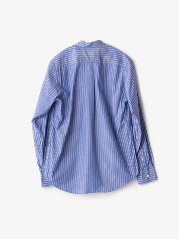 襟と台襟部分のボタンを無くし、すっきりとしたスタンドカラーシャツ。台襟合わせ部分のパターンを柔らかく丸めな雰囲気に仕上げています。襟のないシャツが好き、ボタンダウンが苦手という方はスタンドカラーシャツがおすすめです。