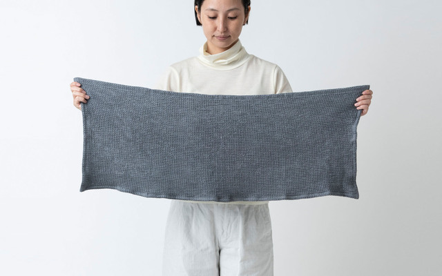 ワッフル織りはもちろんコットン素材でもありますが、コットン素材などでこの肉厚とボリューム感ですと、乾きにくいのが少し気になるところ。こちらの生地はリネン100%ですので、速乾性があるので春夏の湿度が高くても、しっかり乾いて衛生的に使えます。洗濯時の生乾きもしにくいです。