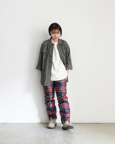 合わせるアイテムによって印象もアレンジできるパンツです。