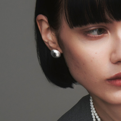 磨き上げられたオブジェのように耳元に浮かぶスタッドピアス。