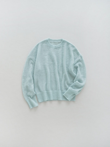 軽くて細いモヘアの糸を編み上げたニットプルオーバー。大人に似合うシアー感になるよう、編み地や編み目の密度にもこだわっています。モヘアならではの絹のような光沢と柔らかな風合いが際立つ、シンプルなデザインです。