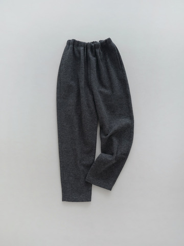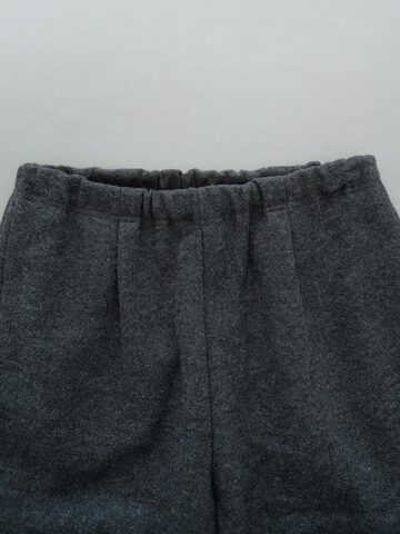 パイル編みで凹凸のある表面感が特徴のウールリングのパンツ。裾に向かってテーパードを利かせたシルエットで、脚がすっきりと見えます。