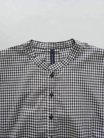 ブルーストライブにはホワイト、濃紺ギンガムにはブラックのボタンがついており、それぞれの配色がデザインポイントになっています。