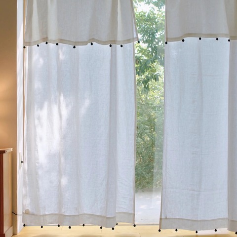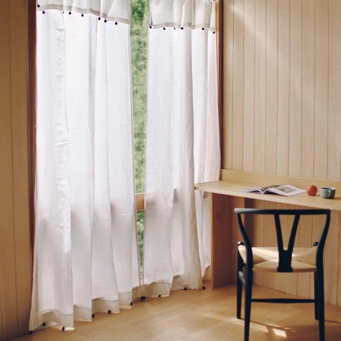 上質なリネンにポンポンをあしらった、モノトーンのカーテンです。