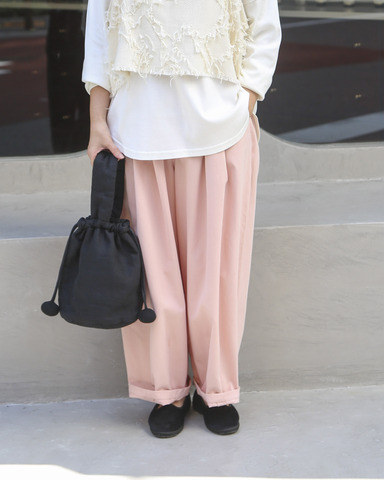 シルエットがとにかくきれいなコクーンパンツ。
