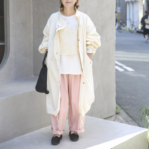 裾とウエストのドローストリングで、お好みのシルエットにアレンジできます。