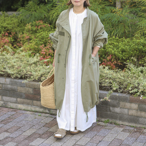 袖が大きく、ボリュームスリーブのような丸みのあるシルエットが魅力のモッズコート。