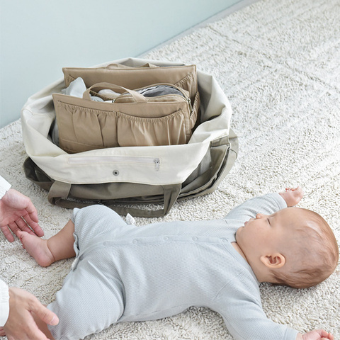 おむつにおしりふき、着替えなど大量のアイテムをここに整理しておけば、ベビーとのお出かけセットが完成。バッグを変えたい時もそのまま移動させられて、「忘れ物ないっけ?」と心配になるパパも安心です。