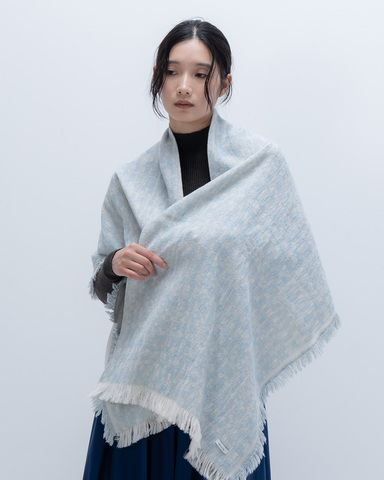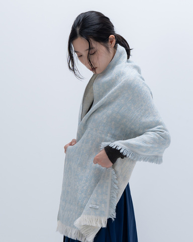 色づき始めた山の木々や日の色によって変化する街の景色、鳥から見た里山、ぼんやりと心の中に残る愛おしい風景をモザイクのようにぼんやりと表現しています。 そんな景色とともに感じる、ウールのマフラーはこれからの肌寒くなる季節にそっと首元に優しさとあたたかさを感じることのできるアイテム。