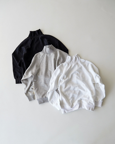商品名にある“NERDS”は、スラングで「こだわり屋」や「オタク気質」を意味します。その名の通り、無駄を削ぎ落としたシンプルな佇まいに、細部へのこだわりを感じさせるハイネック仕様のスウェット。