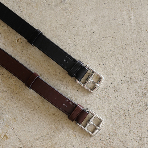 英国の伝統技術を継承する老舗メーカーが手がけたレザーベルト。馬具にも使われる堅牢なブライドルレザーを採用し、耐久性と艶やかさを兼ね備えています。