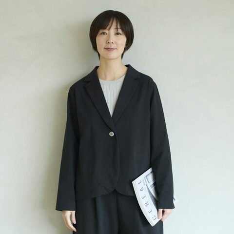 シンプルな一つボタンのテーラードジャケットは、かつてスーツに定評のあるブランドで勤務していたバイヤー自身の経験から、着心地にこだわっています。