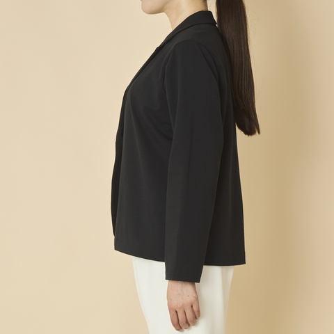 体を動かすときに窮屈にならないよう、また、丸みを帯びてきた体型に柔らかく沿うよう、少しだけ肩を落として身幅にもゆとりをもたせたサイズ感にしています。ワンサイズですが、7号~11号の方にきれいに着ていただけます。