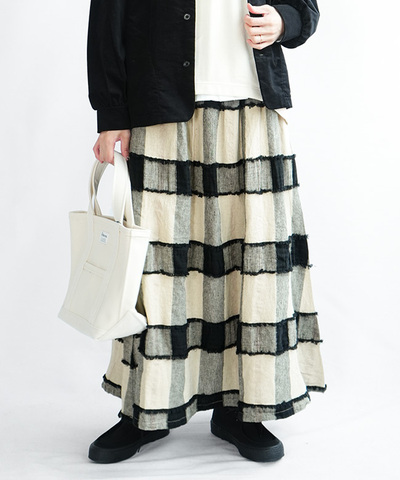 ina|【WOODY別注】 ウールチェックタックスカート チェック柄 ロング丈 232168