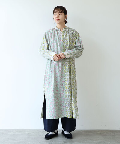 yuni|△コットンキャッチワッシャー バンドカラーワンピース 1701OP008242
