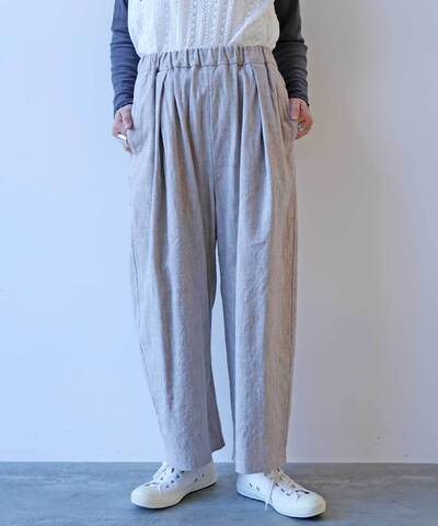 yuni|△80/2強撚コットン ギャバゴムタック パンツ 1701PT023251
