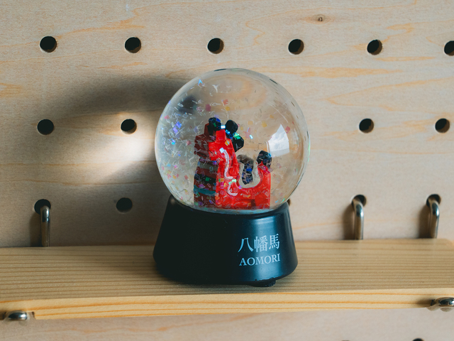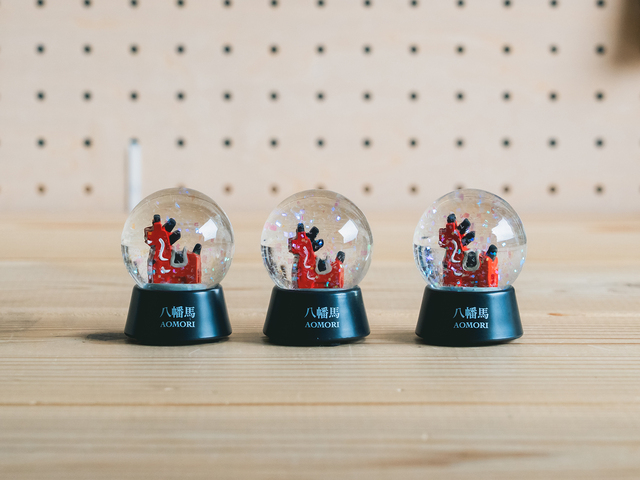 小さなドームの中に、愛らしいミニチュアの八幡馬が佇みます。郷土のぬくもりを感じられる一品です。手のひらサイズの中に広がる青森の風景を、デスクやお部屋でお楽しみください。