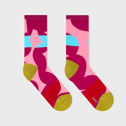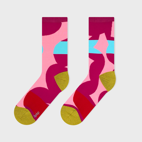 テキスタイルデザイナー 鈴木マサルさんが表現する色柄が再現されたソックス。