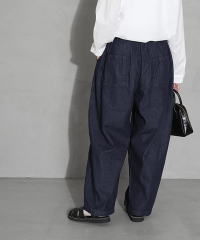 solamonat poche|デニムイージーパンツ ジーンズ ワイドパンツ ゆったり ワンウォッシュ ユーズド ブルー 【ご予約商品/2月下旬頃入荷予定】poche-dm-ez