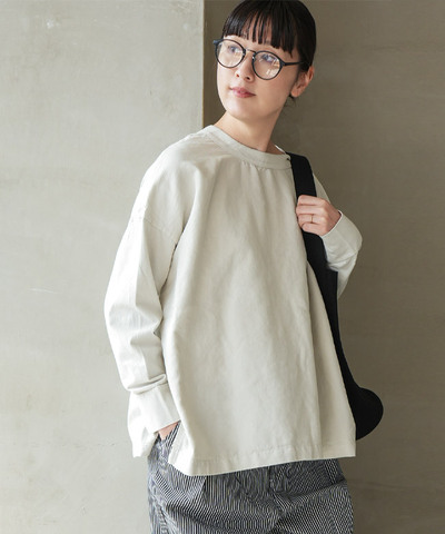 prit|【30%OFF】【WOODY別注カラー】 18/1綿麻ムラ糸天竺×60/1リネンガーベラ刺繍 切替コクーンプルオーバー 長袖 p91546