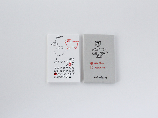 印刷の偶然性から生まれる表情と、手仕事ならではの質感を大切にしているpalmehusetのカレンダー。1か月ごとにめくりながら、季節の移ろいや月の満ち欠けを感じることができます。