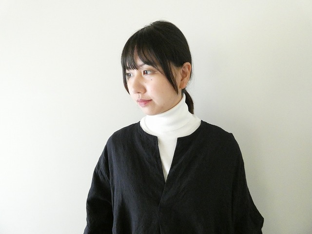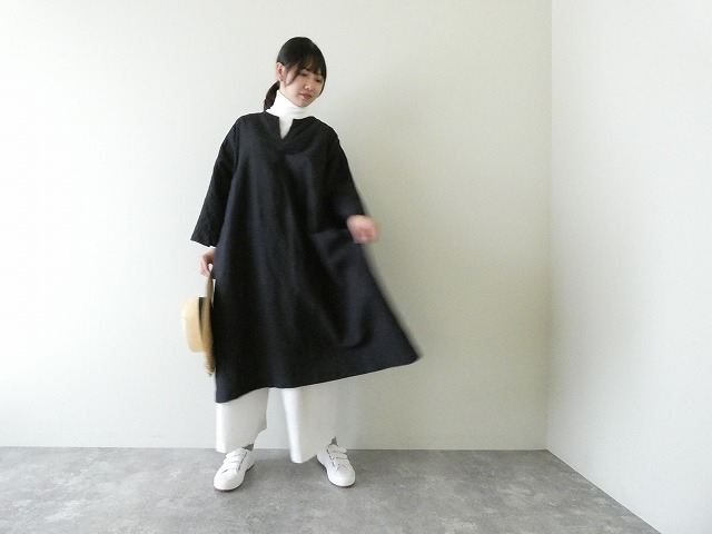 スキッパー仕様の前開きでリラックスした雰囲気のワンピース。前身頃はすっきりとしたシャツスリーブ、後ろがギャザーの入ったヨークスリーブになっており、前後で異なる印象がたのしめます。