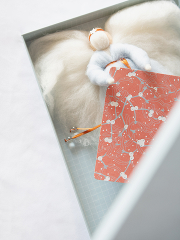 雪の跡のような繊細でさりげない立体感が、ホリデーシーズンの贈り物をやさしく彩ります。