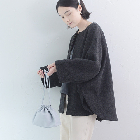 本体と同じ素材を使った巾着の紐は、細めにすることでポーチとしても使いやすくなっています。