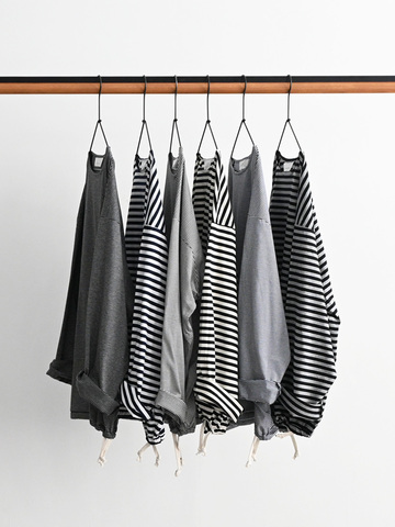 Healthknit|マルチボーダーワッフル ヘムラウンド クルーネック長袖