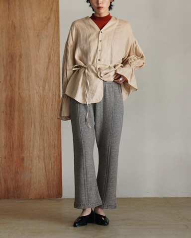ニットならではのドレープが美しく、カジュアル過ぎない印象に仕上がり、オーバーサイズのトップスやワンピースとのレイヤードにもおすすめ。冬の装いに軽さと奥行きを添える、J?ICEADDEDらしいエッジを効かせたコンフォートパンツです。