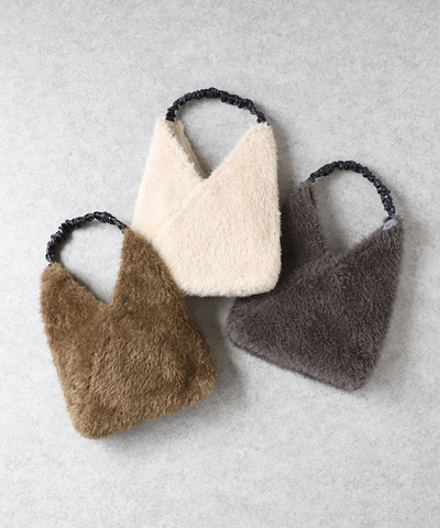 バッグ本体には手触りの良いエコファー素材を使用し、ふんわりとした質感が見た目にもあたたかく、秋冬の装いにぴったりです。